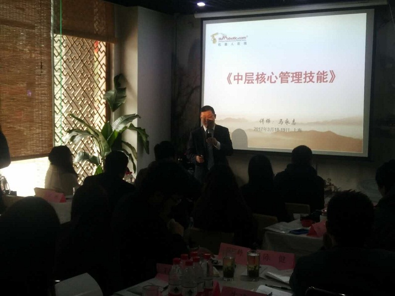 2017年3月18-19日,中國機器人行業(yè)的領(lǐng)先門戶——機器人在線公司針對公司的中高層管理者組織了一次管理課程短期培訓(xùn)班——中層管理者的核心技能,影響力集團(tuán)金牌講師馬永志老師為30多名中高層主管做了精彩的培訓(xùn)。培訓(xùn)中馬老師深入淺出地講解了1.中高層管理者角色定位認(rèn)知。2.卓越管理者組織溝通與會議管理。3.目標(biāo)管理的步驟與方法。4.團(tuán)隊成員的選用育留策略等并結(jié)合具體案例講解團(tuán)隊成員的輔導(dǎo)與激勵念……深入淺出、娓娓道來,在學(xué)員中間產(chǎn)生了廣泛的共鳴,贏得了在場全體學(xué)員熱烈的掌聲。